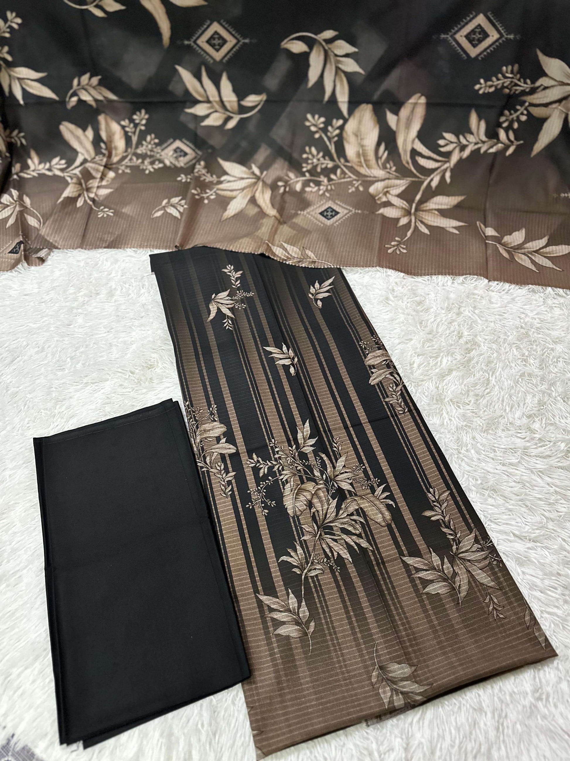 Elevate your winter wardrobe with our elegant 3-Piece Unstitched Ladies Suit made from premium Dhanak Bana Dora fabric. This luxurious ensemble includes a beautifully woven shirt, a warm matching shawl, and a dyed trouser—perfectly blending traditional charm with modern comfort. The soft yet durable texture of Dhanak Bana Dora makes it an ideal choice for the colder months, offering both warmth and style. Whether you're attending a family gathering or a casual outing, this unstitched suit lets you personalize your look while staying effortlessly chic. Stitch it your way and make every moment stylish!