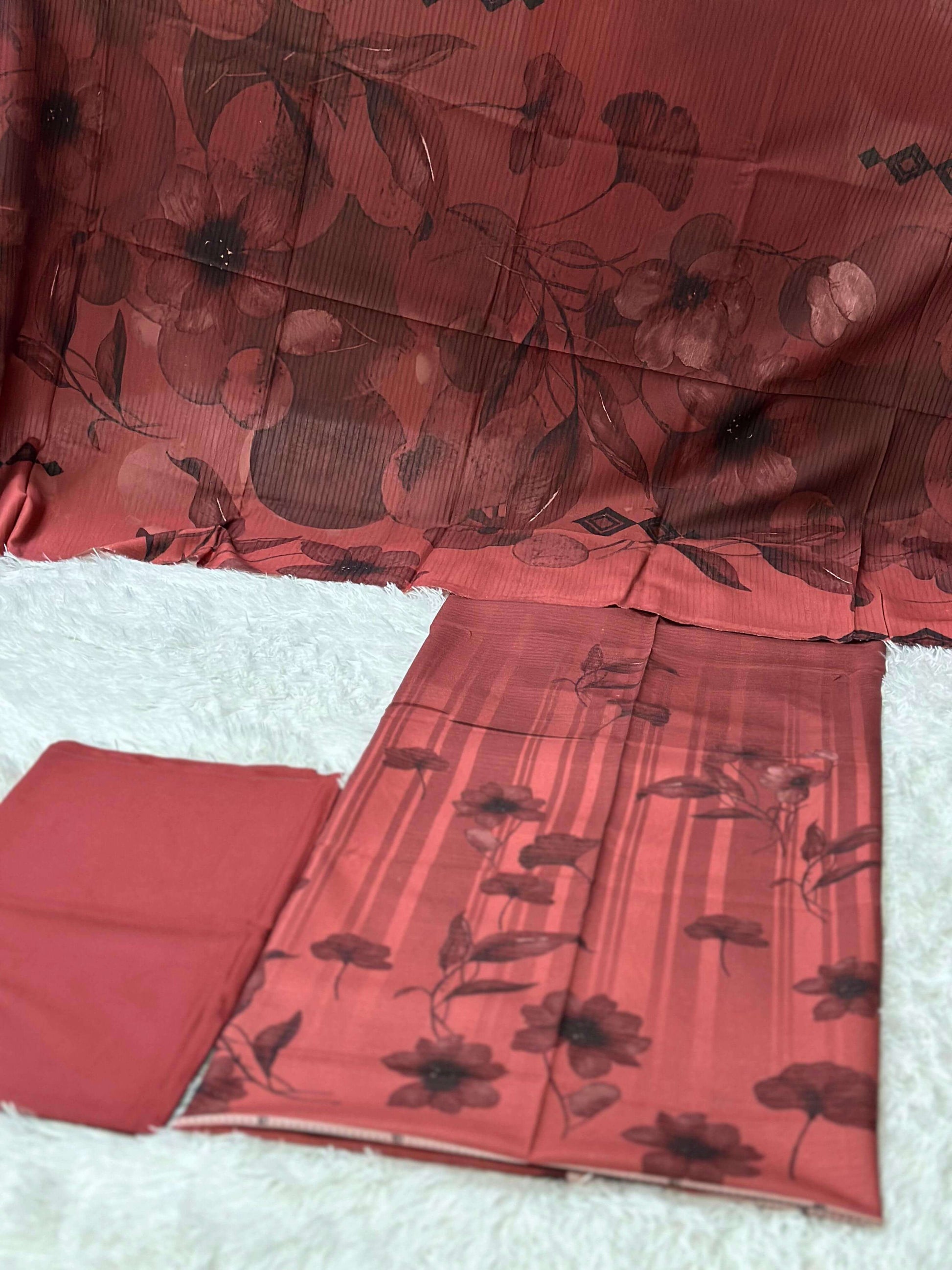 Elevate your winter wardrobe with our elegant 3-Piece Unstitched Ladies Suit made from premium Dhanak Bana Dora fabric. This luxurious ensemble includes a beautifully woven shirt, a warm matching shawl, and a dyed trouser—perfectly blending traditional charm with modern comfort. The soft yet durable texture of Dhanak Bana Dora makes it an ideal choice for the colder months, offering both warmth and style. Whether you're attending a family gathering or a casual outing, this unstitched suit lets you personalize your look while staying effortlessly chic. Stitch it your way and make every moment stylish!